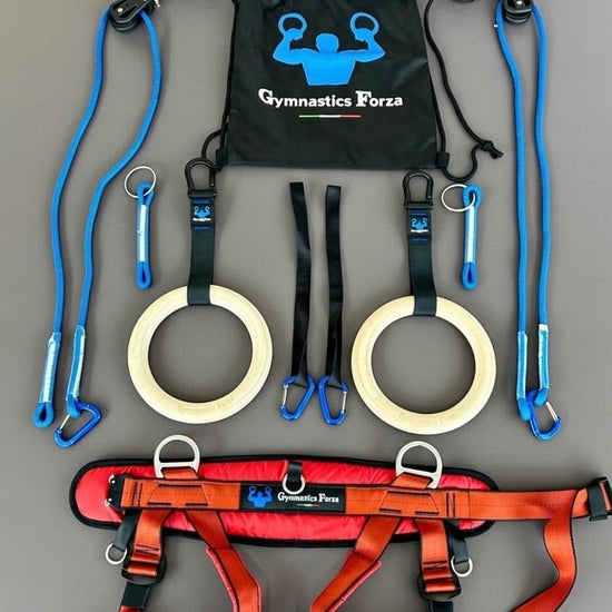 Gymnastics Forza Ring System omogućuje djeci da nauče sve gimnastičke i kalistenika pokrete koje izvode elitni sportaši na gimnastičkim karikama, paralletesima i podu, uključujući prednje i stražnje salte. Posebno je dizajniran za postepenu i sigurnu progresiju u svim kalistenika i gimnastičkim vježbama. Uz ovu opremu i dosljednu praksu, mladi korisnici mogu postići svoje fitness ciljeve i razviti napredne vještine nalik profesionalnim sportašima.