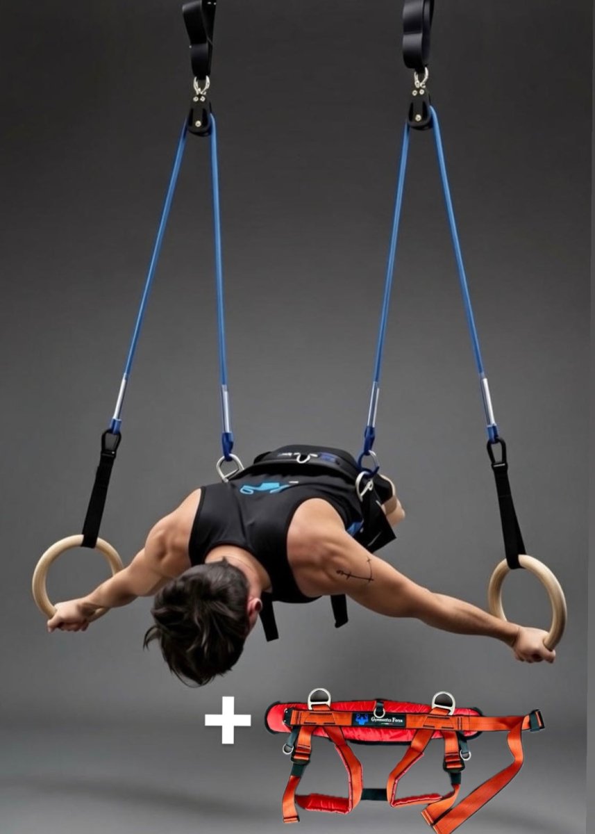 Ee Gymnastik Forza Réng System mat Zwee Gurtungen (Grouss + Kleng) + Backflip Maschinn